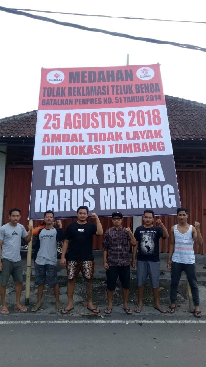 Sebelumnya, Pada Minggu malam, tanggal 19 Agustus 2018 Desa Pakraman Denpasar yang dimotori oleh Angkatan Muda Pembela Ibu Pertiwi (Ampibi) mendirikan baliho penolakan reklamasi Teluk Benoa. baliho penolakan reklamasi tersebut didirikan di pertigaan setra badung sekitar pukul 21.00 wita. pendirian baliho berukuran 2×3 meter tersebut dikordinatori oleh I Wayan Gede Sugiartha. Ia menegaskan bahwa pendirian baliho ini merupakan rentetan dari pendirian baliho yag sempat kita dirikan di beberapa titik di kota Denpasar. Berdirinya baliho ini merupakan wujud dari konsistensi dan kebulatan tekad kita dalam menjaga Teluk Benoa agar terbebas dari ancaman reklamasi. “kami akan mengawal hingga 25 Agustus nanti agar AMDAL dinyatakan tidak layak dan Teluk Benoa menang” Tegasnya.