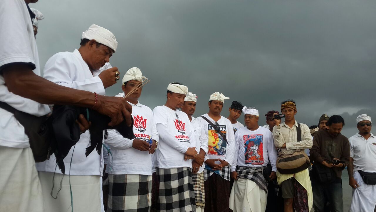 Sabtu, 1 Oktober 2016 Pasubayan Bendesa Adat tolak reklamasi melaksanakan ritual mapekelem dan penyamblehan yang dilakukan di 5 penjuru arah mata angin di kawasan suci teluk Benoa