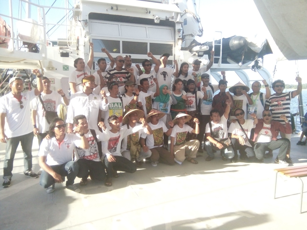Kapten Kapal Rainbow Warrior, Hettie menjelaskan kesenangannya telah sampai di Bali. Lebih lanjut dia menjelaskan perjalanannya menuju Bali, crew kapal mengabarkan bahwa ada tumpahan minyak di Teluk Balikpapan yang berdampak pada biota laut dan masyarakat lokal disana. “Dalam perjalanan menuju Bali, crew kapal mengabarkan ada tumpahan minyak di Teluk Balikpapan, kemudian dampaknya terhadap masyarakat local dan lingkungan terutama biota laut”. Terangnya.