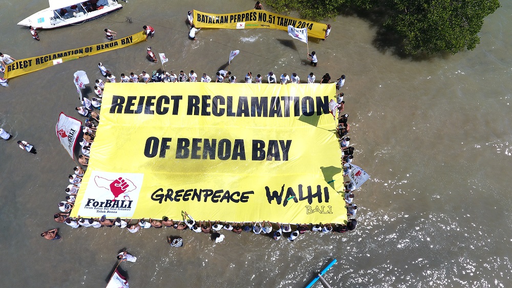 Juru kampanye Laut Greenpeace, Arifsyah Nasution mengatakan, pihaknya akan terus bersolidaritas untuk mendukung gerakan masyarakat adat dan seluruh komponen masyarakat sipil yang dengan tegas menolak rencana reklamasi Teluk Benoa. “Greenpeace hari ini hadir di Teluk Benoa bersama WALHI Bali dan ForBALI untuk menjalankan aksi pembentangan spanduk dengan pesan “Reject Reclamation of Benoa Bay” ujar Arifsyah.