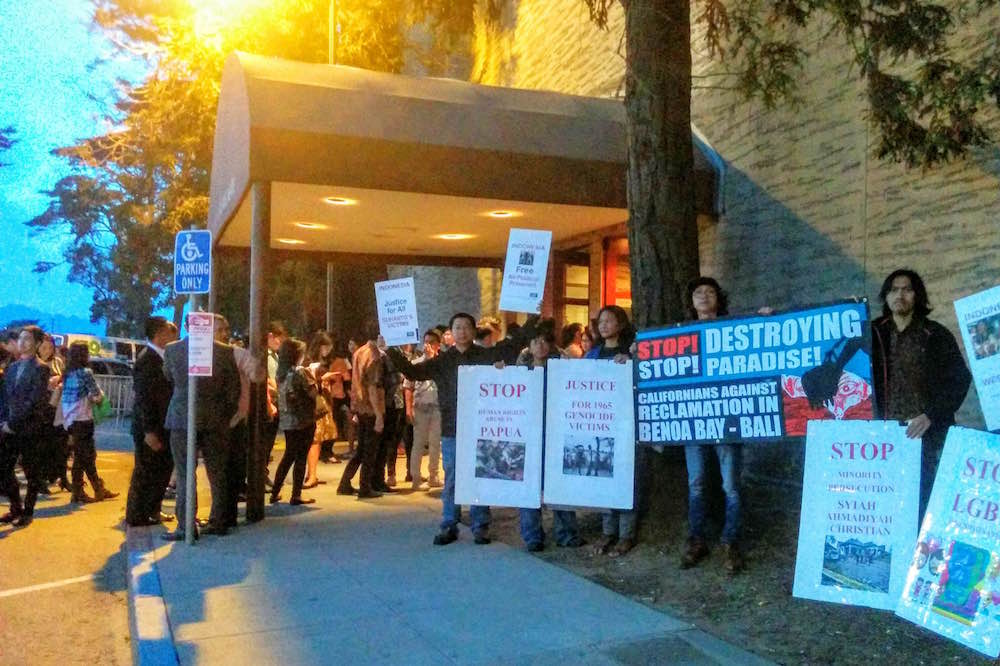 Aksi penolakan ini dilakukan saat Presiden Joko Widodo (Jokowi) mengadakan pertemuan dengan kelompok Diaspora Indonesia di Palace Of Fine Art Theater, San Fransisco pada 16 Februari 2016.